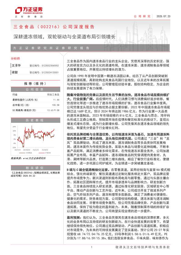 【方正证券】【20250723】三全食品(002216)公司深度报告:深耕速冻领域,双轮驱动与全渠道布局引领增长-25页