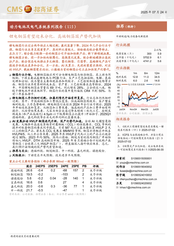 电力设备及新能源 高端铜箔 HVLP铜箔 锂电铜箔 国产替代