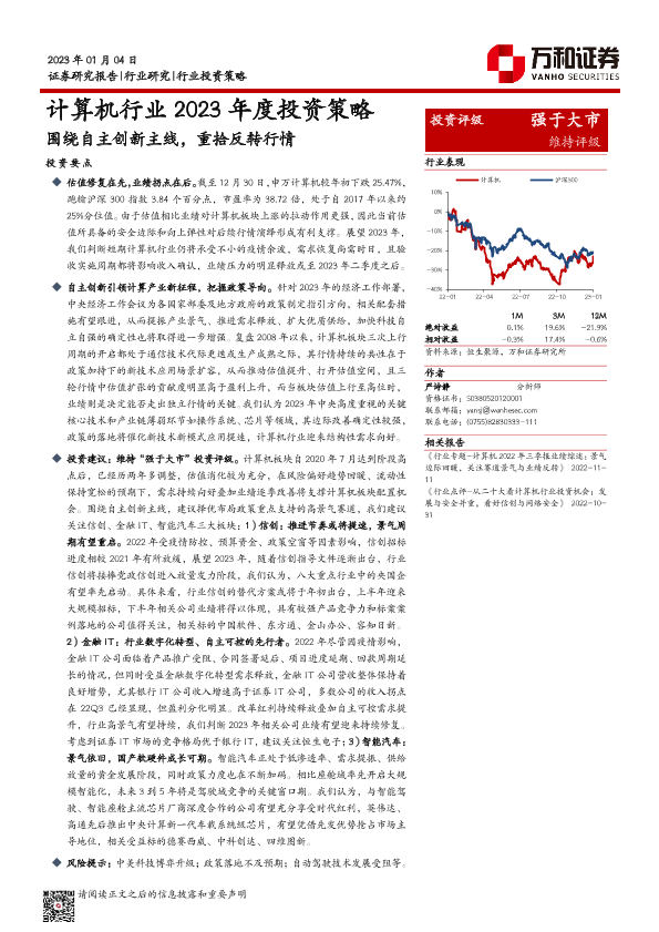【万和证券】【20230104】计算机行业2023年度投资策略:围绕自主创新主线,重拾反转行情-24页
