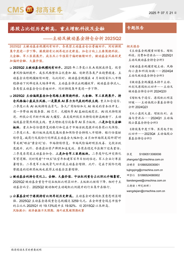 【海通证券】【20250721】主动及被动基金持仓分析2025Q2-20页