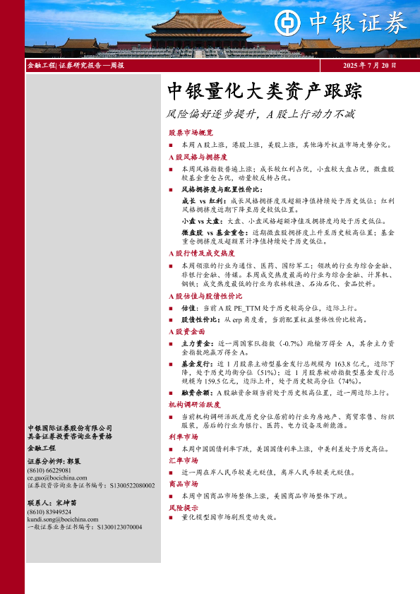 【中银证券】【20250720】中银量化大类资产跟踪:风险偏好逐步提升,A股上行动力不减-30页