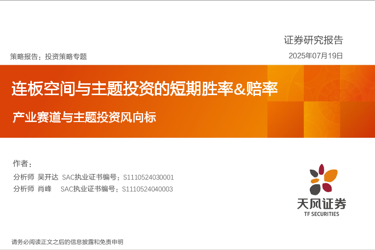 【天风证券】【20250719】产业赛道与主题投资风向标:连板空间与主题投资的短期胜率&赔率-48页