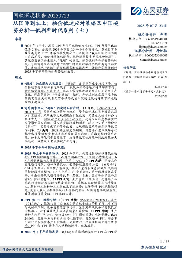 【东吴证券】【20250723】从国际到本土,物价低迷应对策略及中国趋势分析-19页