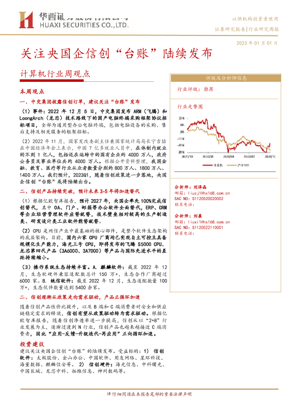 【华西证券】【20230101】计算机行业周观点:关注央国企信创“台账”陆续发布-26页