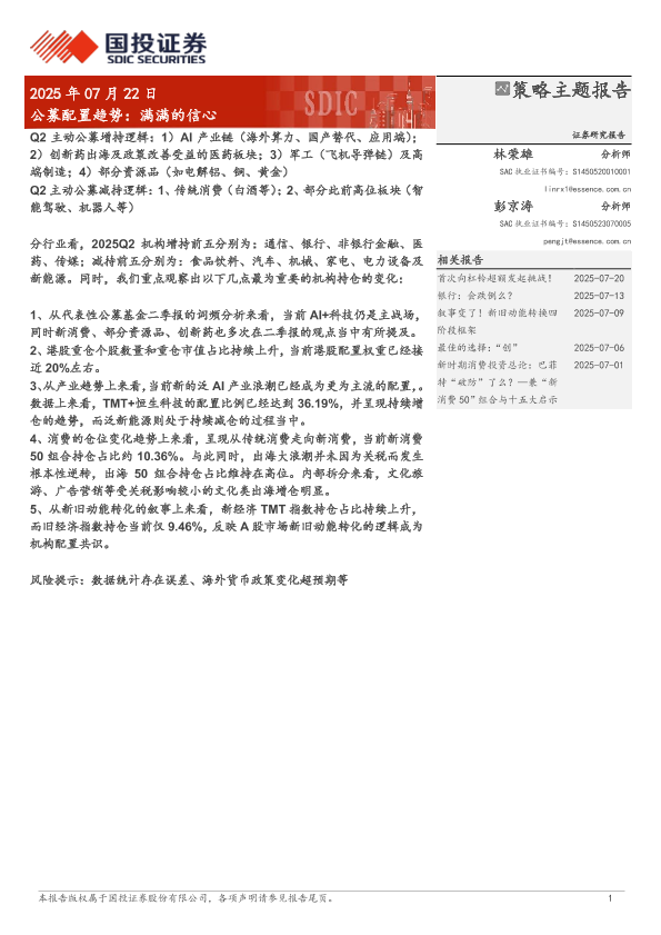 【国投证券】【20250722】公募配置趋势:满满的信心-10页