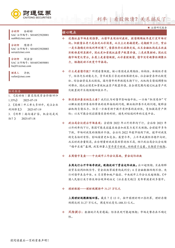 【财通证券】【20250720】利率|看股做债?关系搞反了-12页