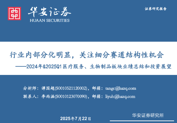 【华安证券】【20250722】医药生物行业2024年&2025Q1医疗服务、生物制品板块业绩总结和投资展望-21页