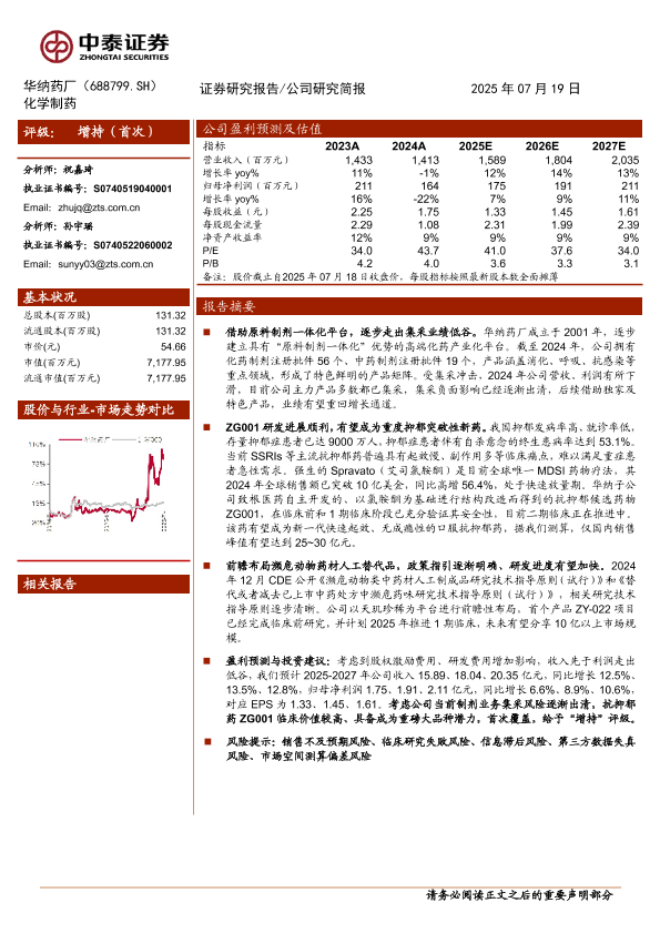【中泰证券】【20250719】华纳药厂逐步走出集采低谷,抗抑郁新药潜力巨大-15页