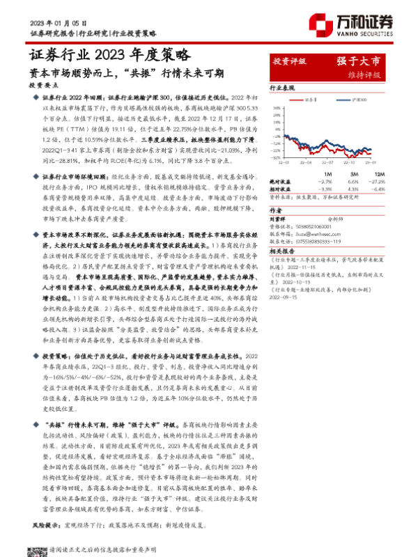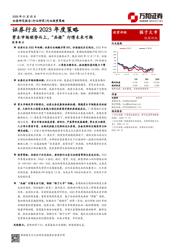 【万和证券】【20230105】证券行业2023年度策略:资本市场顺势而上,“共振”行情未来可期-16页