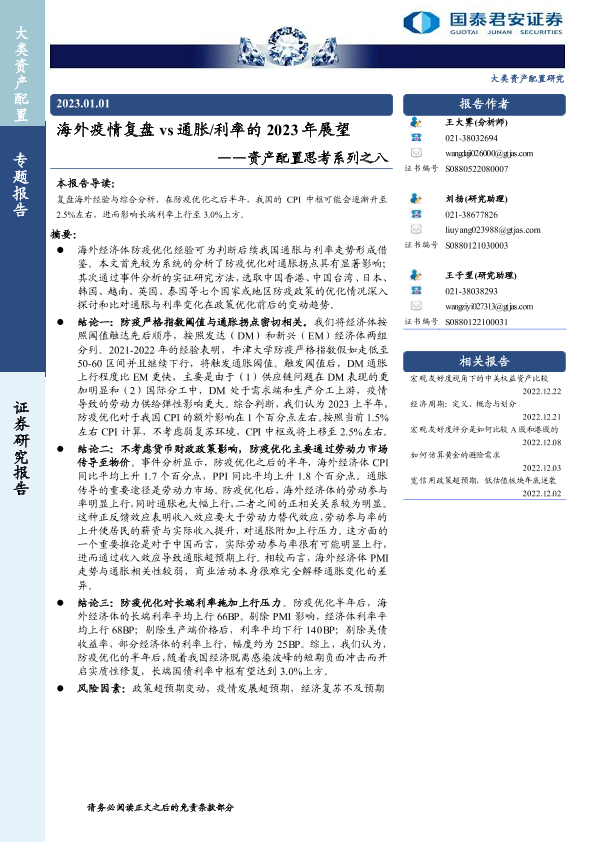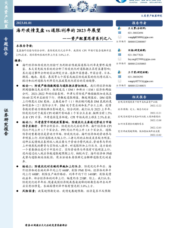【国泰君安证券】【20230101】海外疫情复盘 vs通胀/利率的 2023年展望-21页