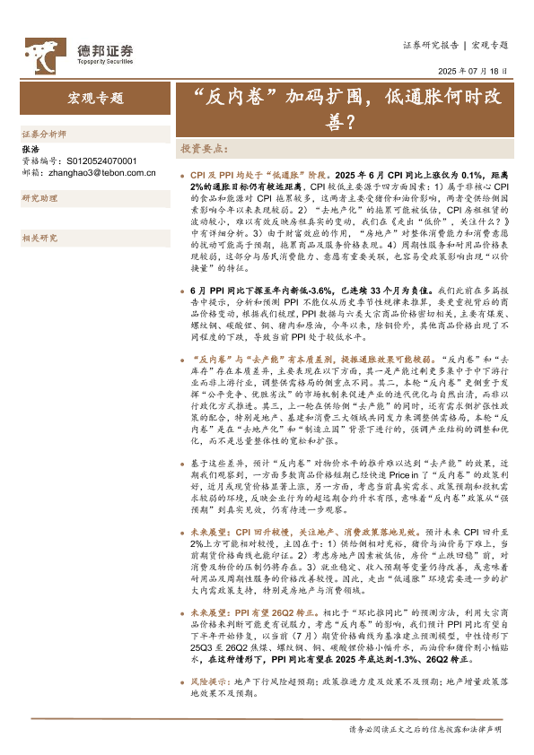 宏观专题 PPI 反内卷 CPI 低通胀