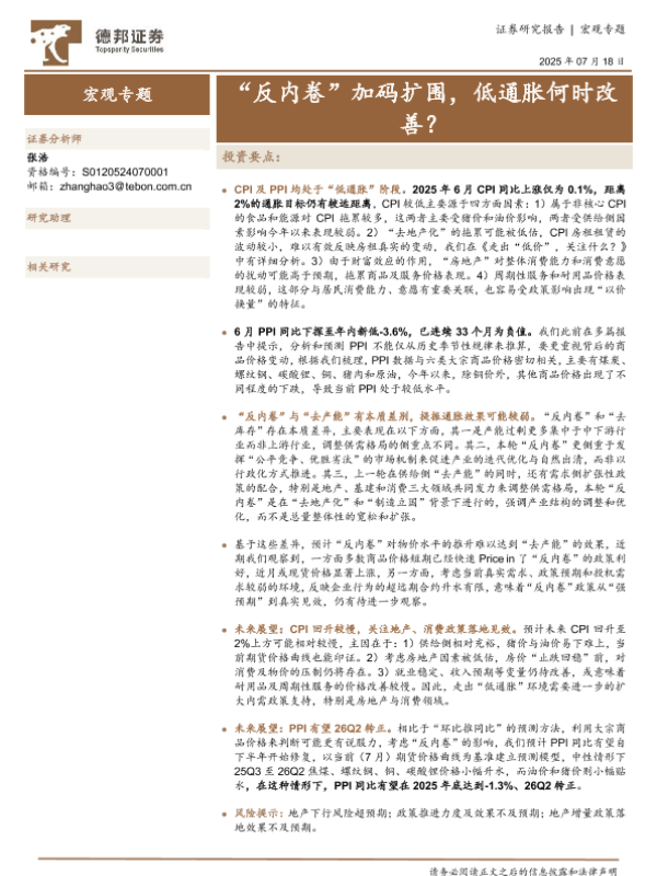 【德邦证券】【20250718】“反内卷”加码扩围,低通胀何时改善?-18页
