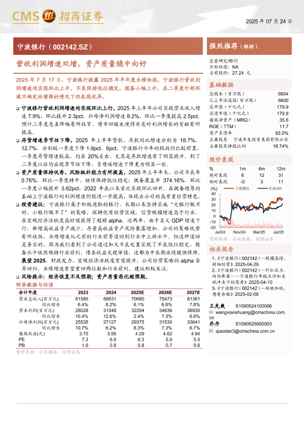【海通证券】【20250724】宁波银行(002142)营收利润增速双增,资产质量稳中向好-11页