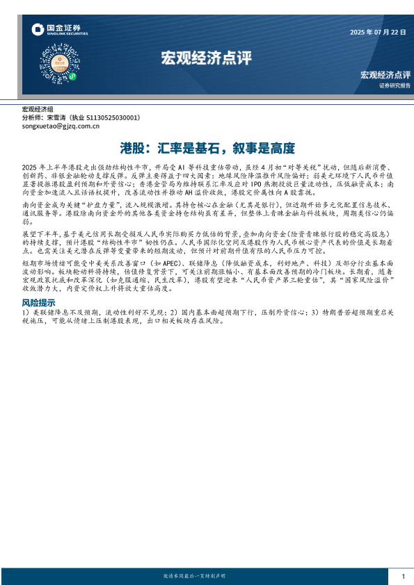 【国金证券】【20250722】宏观经济点评:港股,汇率是基石,叙事是高度-14页
