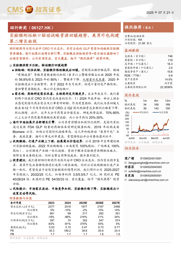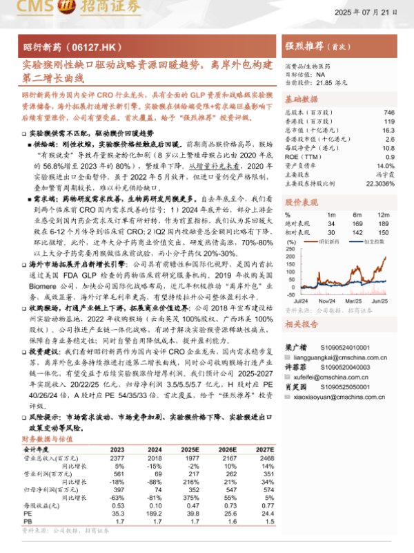 【海通证券】【20250721】昭衍新药实验猴刚性缺口驱动战略资源回暖趋势,离岸外包构建第二增长曲线-19页
