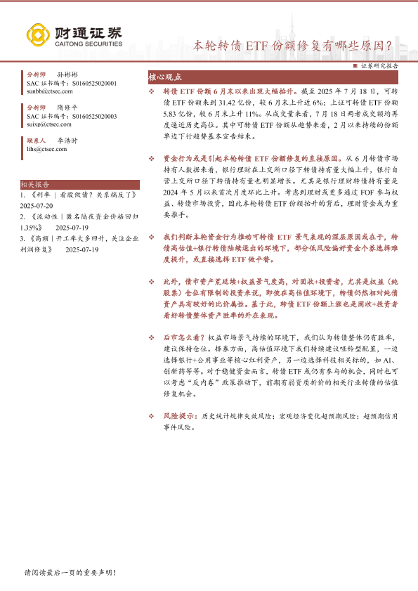 【财通证券】【20250720】本轮转债ETF份额修复有哪些原因?-13页
