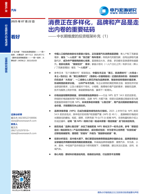 【申万宏源】【20250722】汽车行业中长期维度的投资框架补充:消费正在多样化,品牌和产品是走出内卷的重要砝码-15页
