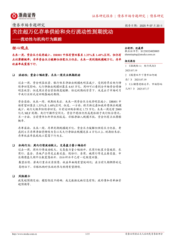 【浙商证券】【20250720】流动性与机构行为跟踪:关注超万亿存单供给和央行流动性到期扰动-15页
