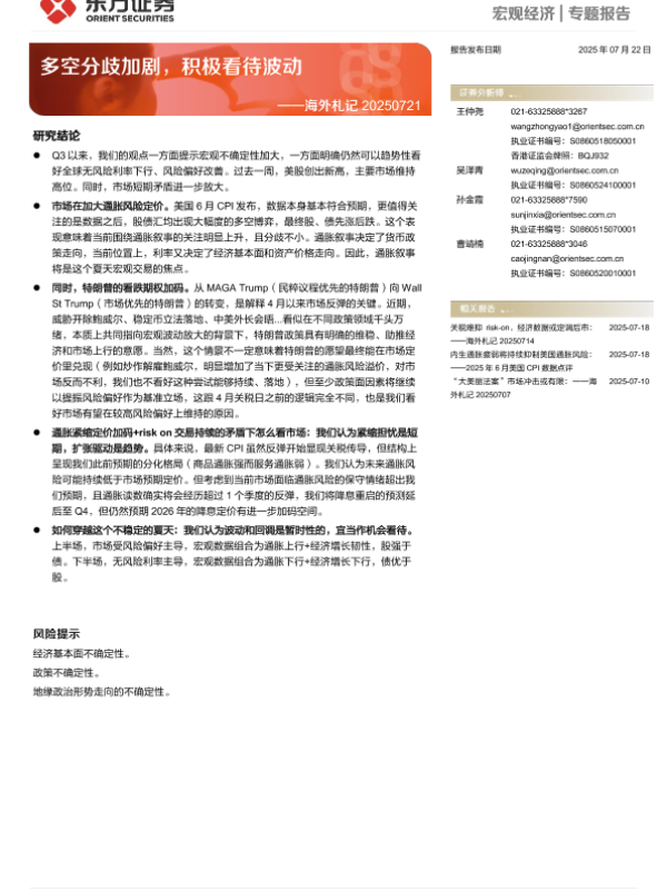 【东方证券】【20250722】海外札记:多空分歧加剧,积极看待波动-13页