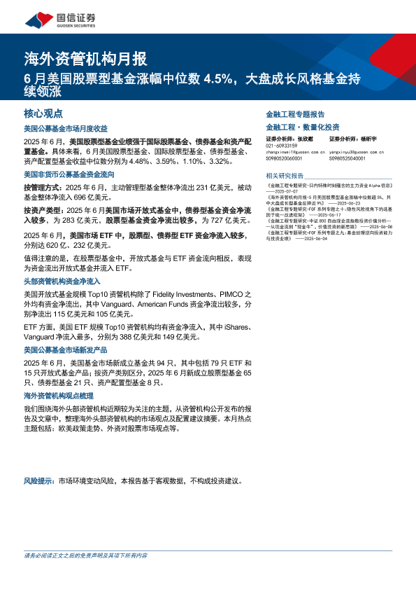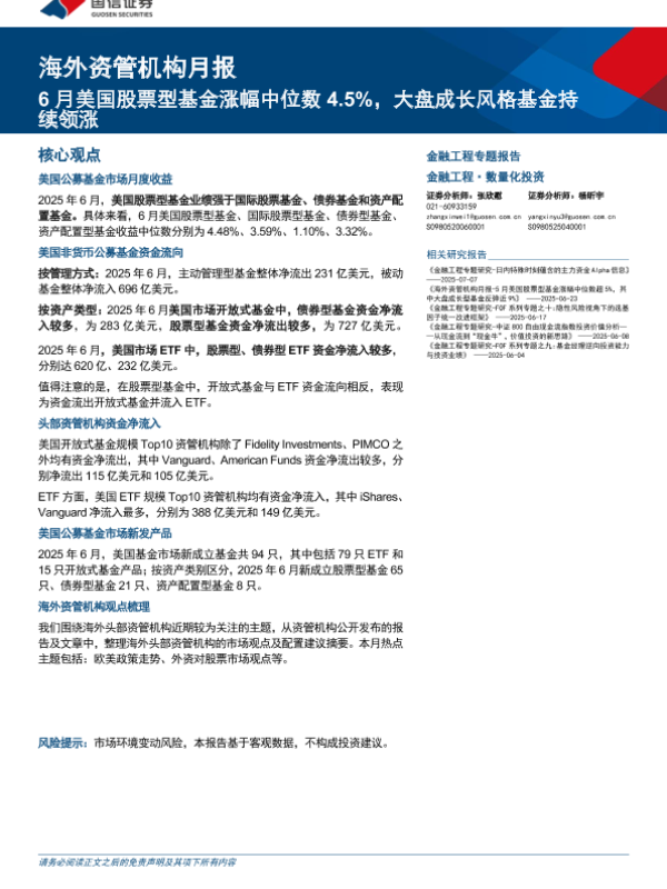 【国信证券】【20250720】海外资管机构月报:6月美国股票型基金涨幅中位数4.5%,大盘成长风格基金持续领涨-15页