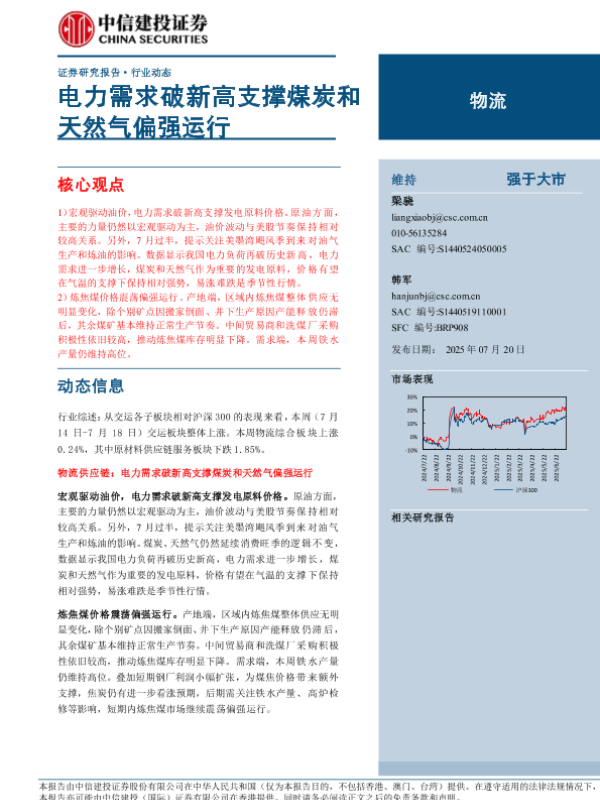 【中信建投证券】【20250720】物流行业动态:电力需求破新高支撑煤炭和天然气偏强运行-14页