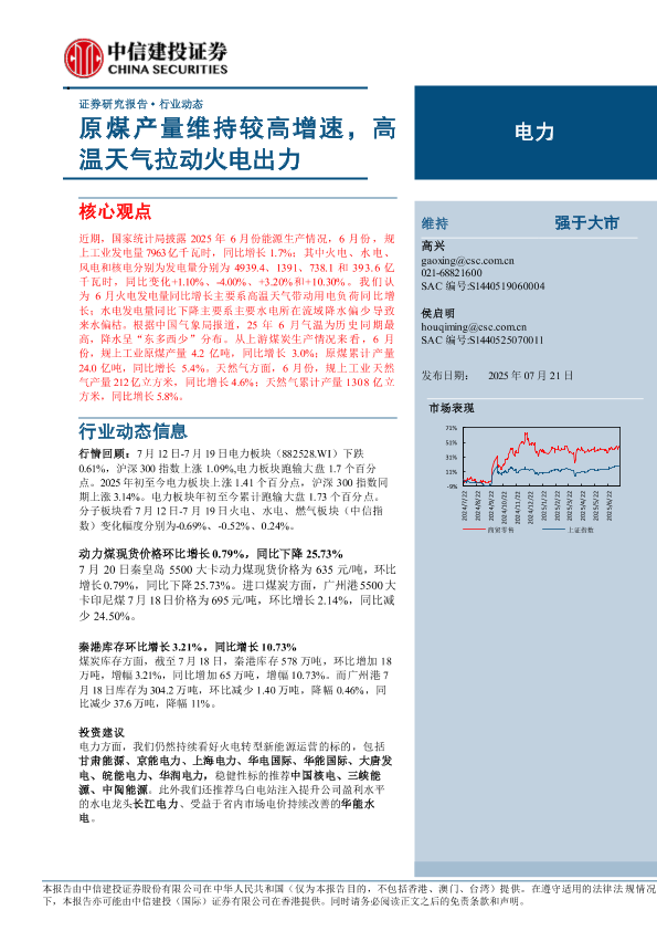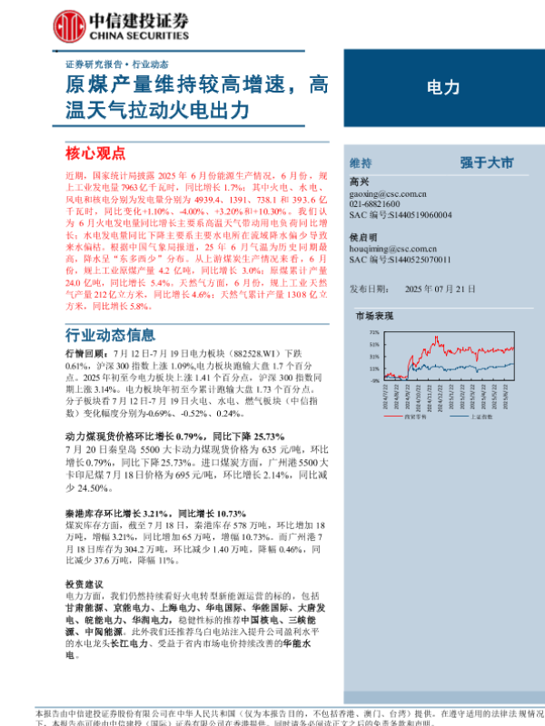 【中信建投证券】【20250721】电力行业动态:原煤产量维持较高增速,高温天气拉动火电出力-20页