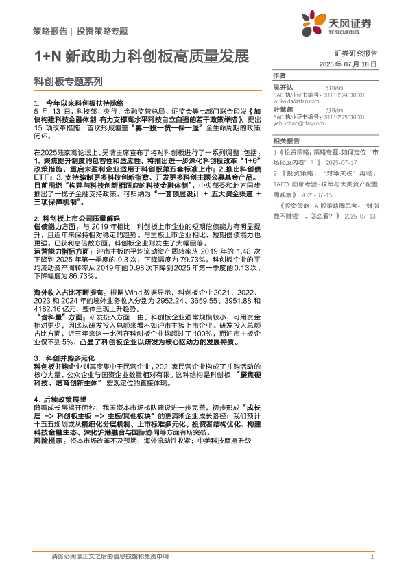 【天风证券】【20250718】科创板专题系列:1%+N新政助力科创板高质量发展-18页