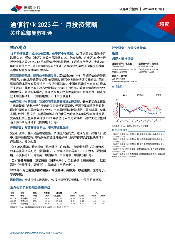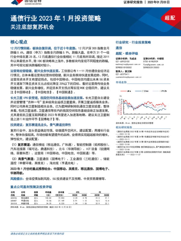 【国信证券】【20230103】通信行业2023年1月投资策略:关注底部复苏机会-24页