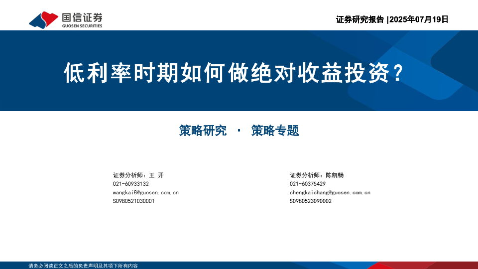 【国信证券】【20250719】低利率时期如何做绝对收益投资?-69页