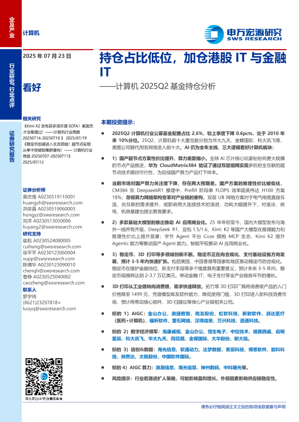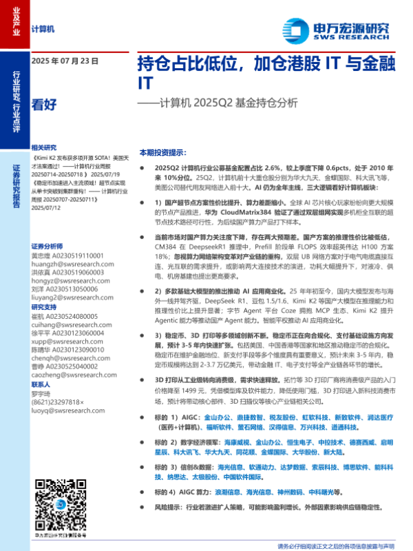 【申万宏源】【20250723】计算机行业2025Q2基金持仓分析-10页