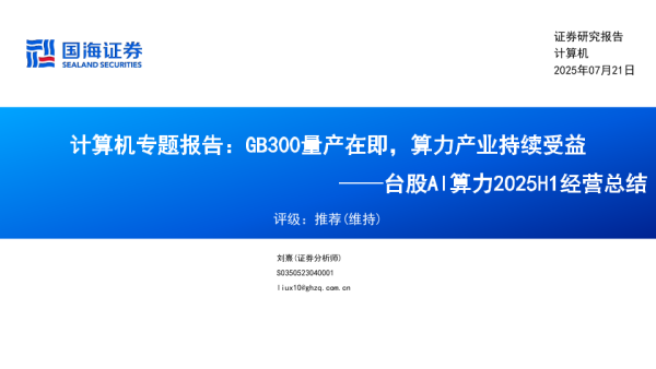 【国海证券】【20250721】计算机行业专题报告:GB300量产在即,算力产业持续受益-33页