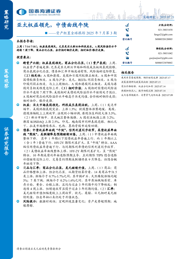 全球跟踪 亚太权益 资产配置 牛陡 中债曲线