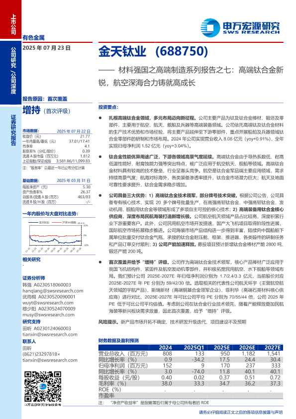【申万宏源】【20250723】材料强国之高端制造系列报告之七:高端钛合金新锐,航空深海合力铸就高成长-29页