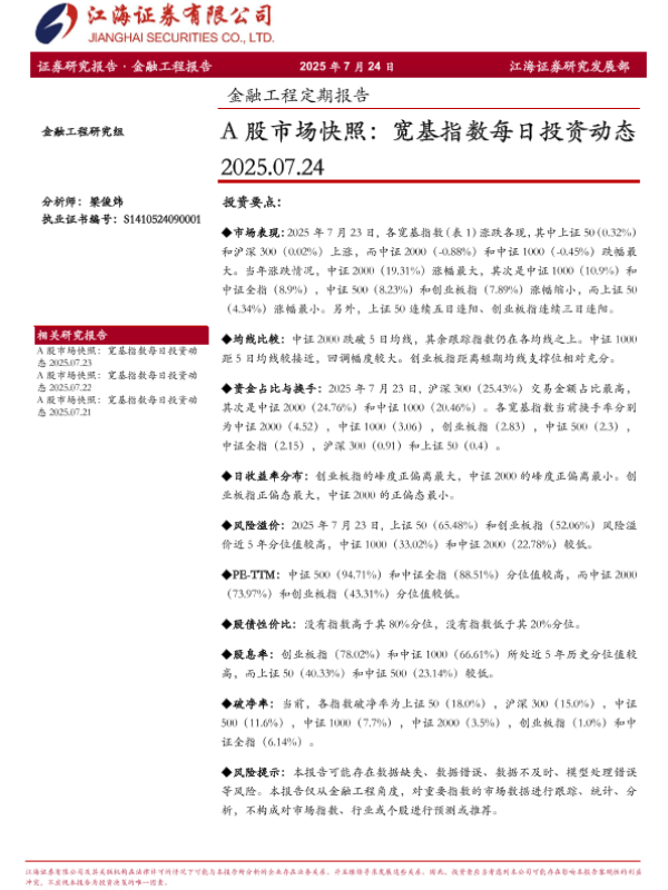 【江海证券】【20250724】金融工程定期_process报告:A股市场快照,宽基指数每日投资动态-13页