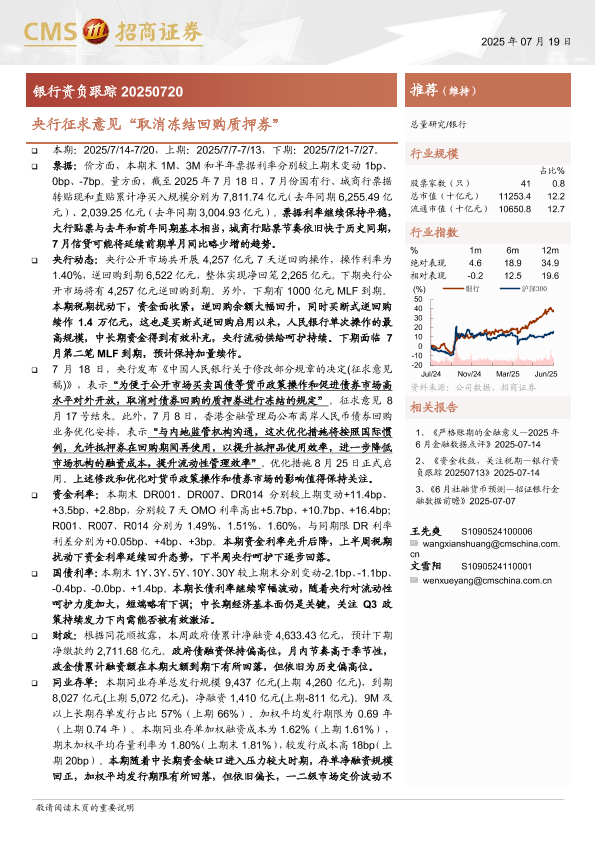 【海通证券】【20250719】银行业资负跟踪:央行征求意见“取消冻结回购质押券”-43页