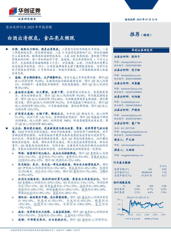 【华创证券】【20250722】食品饮料行业2025年中报前瞻:白酒出清探底,食品亮点频现-17页