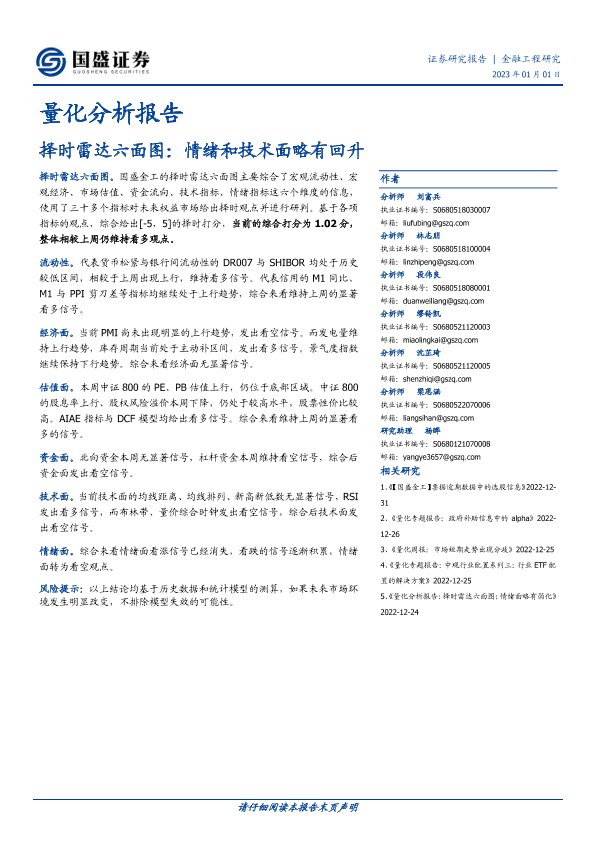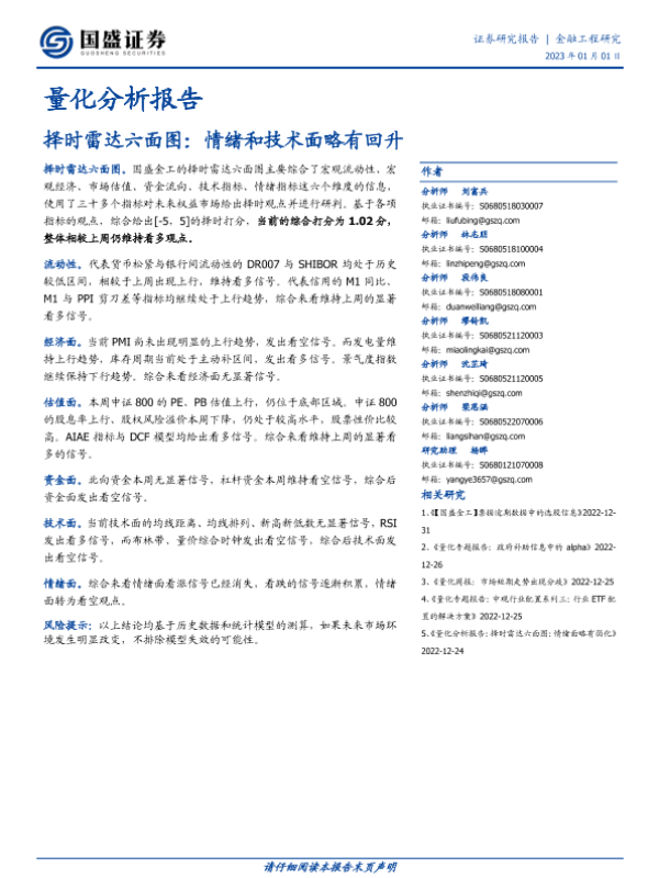 【国盛证券】【20230101】量化分析报告:择时雷达六面图:情绪和技术面略有回升-23页