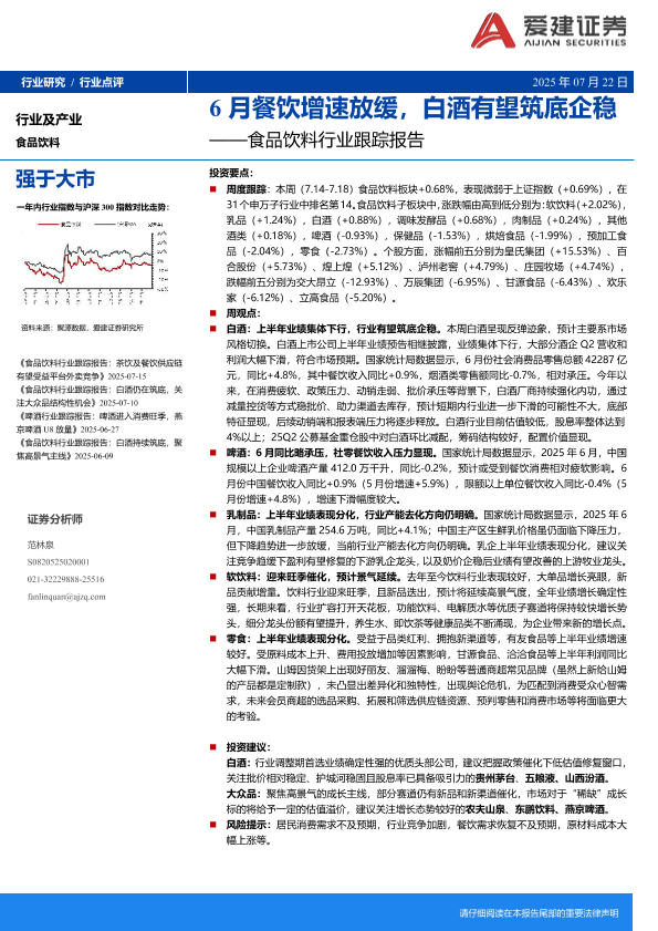 【爱建证券】【20250722】食品饮料行业跟踪报告:6月餐饮增速放缓,白酒有望筑底企稳-13页