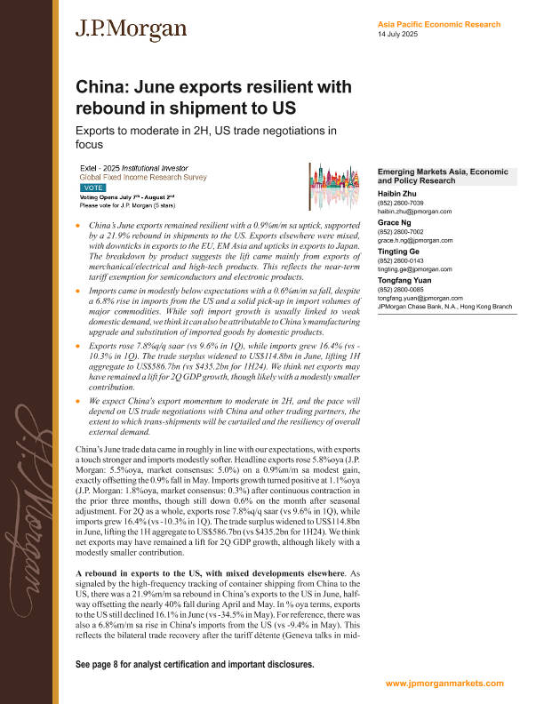 【J.P. Morgan】【20250714】FI-China June exports resilient with rebound in shipment to US-12页