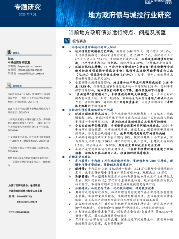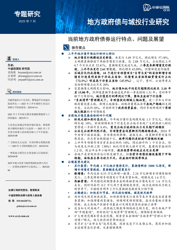 【中诚信国际】【202507】当前地方政府债券运行特点、问题及展望-13页
