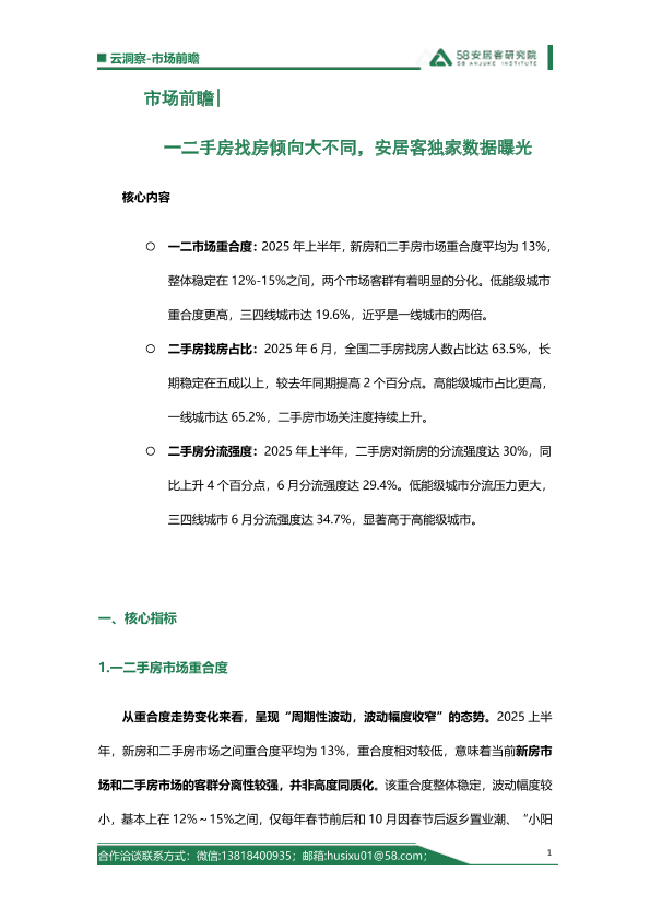 市场重合度 房地产市场 找房倾向 分流强度 一二手房