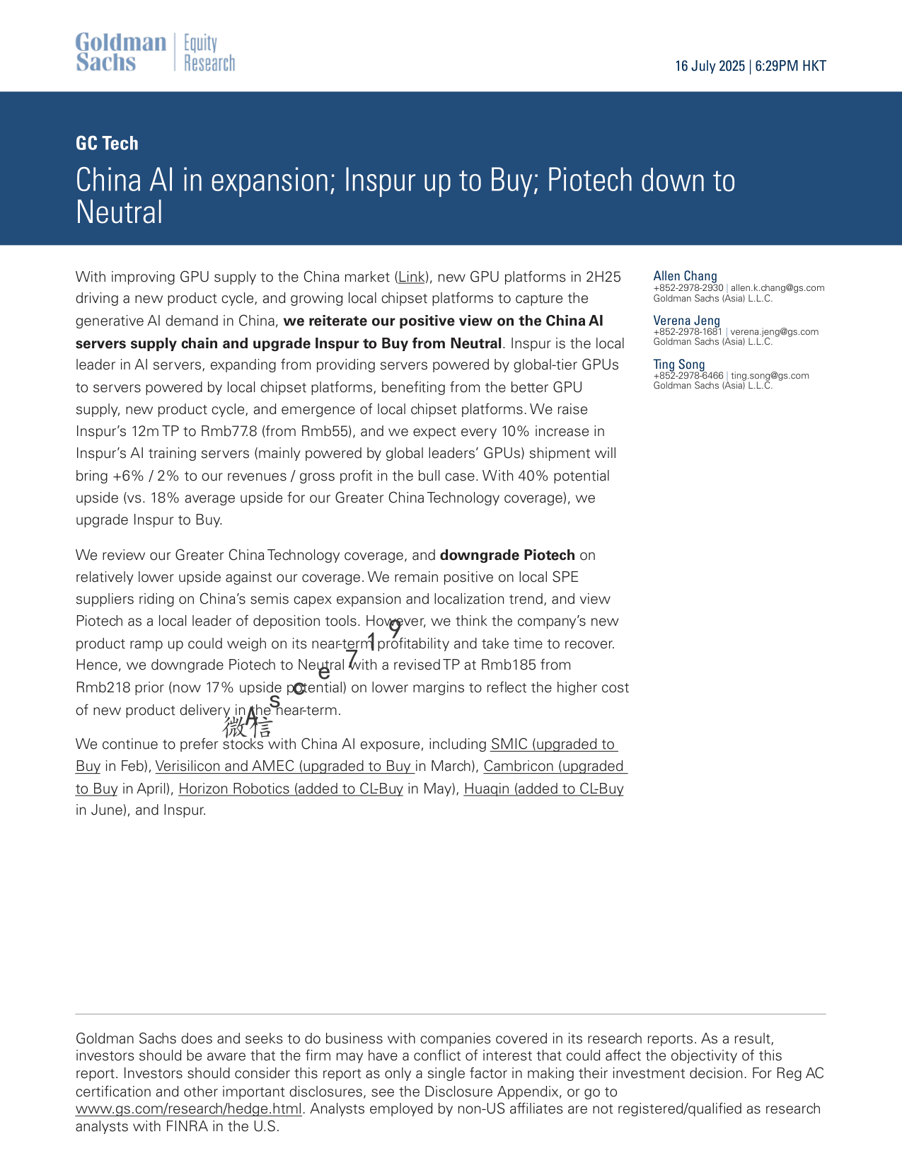 【Goldman Sachs】【20250715】中国AI扩张:浪潮信息上调至买入评级,拓荆科技下调至中性-13页