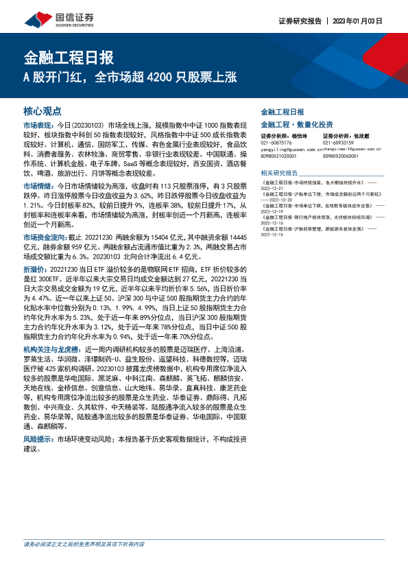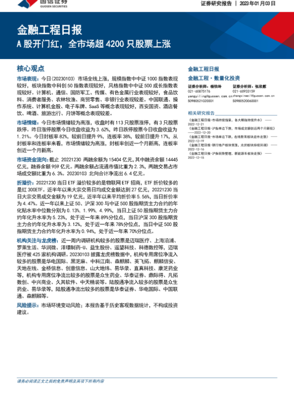 【国信证券】【20230103】金融工程日报:A股开门红,全市场超4200只股票上涨-16页