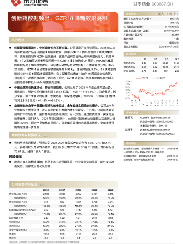 【东方证券】【20250730】甘李药业创新药数据频出_GZR18降糖效果亮眼-5页