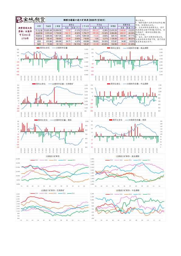 【宝城期货】【20250730】钢联15港港口进口矿库存-2页