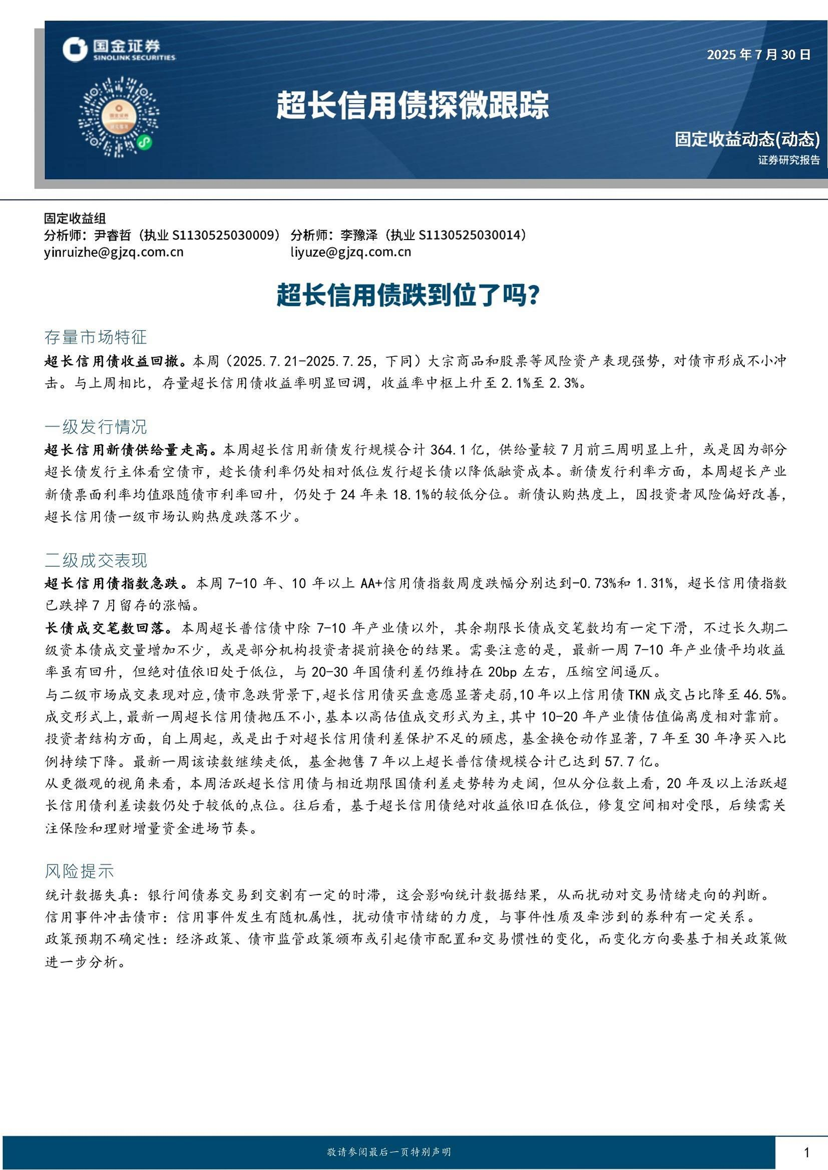 【国金证券】【20250730】超长信用债探微跟踪:超长信用债跌到位了吗-11页