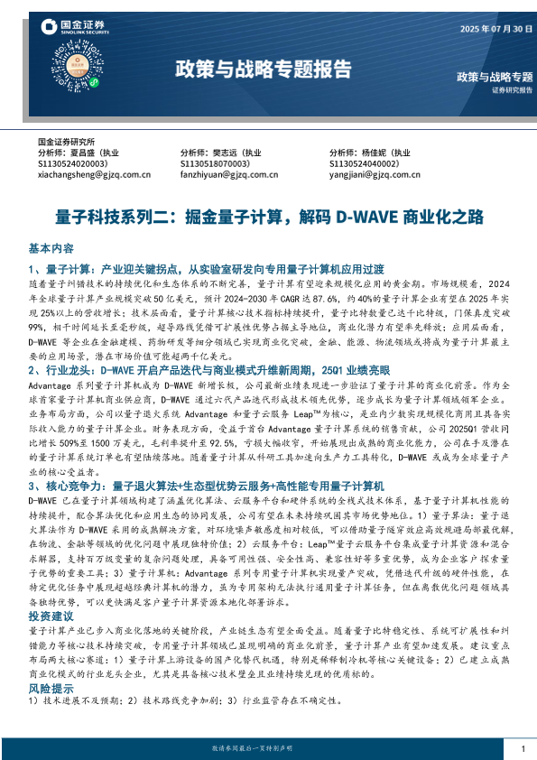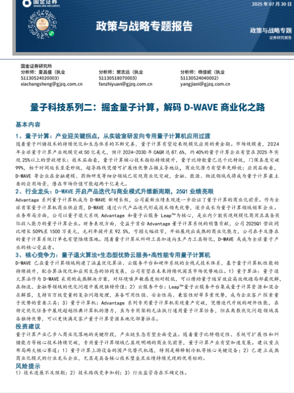 【国金证券】【20250730】政策与战略专题报告:量子科技系列二_掘金量子计算_解码D-WAVE商业化之路-17页