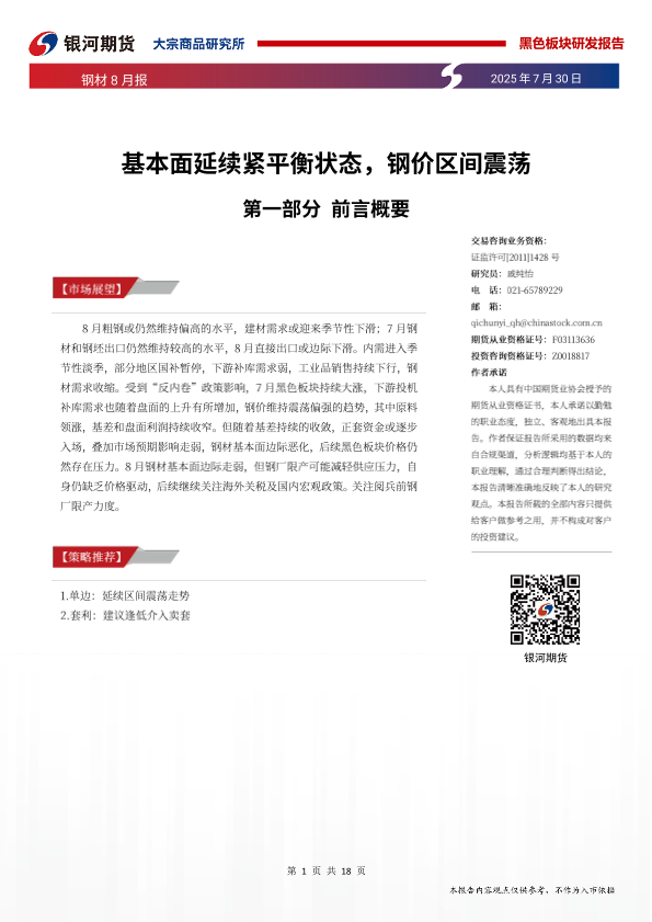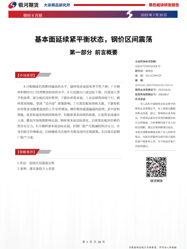 【银河期货】【20250730】钢材8月报_基本面延续紧平衡状态_钢价区间震荡-18页