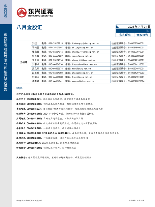 【东兴证券】【20250731】八月金股汇-17页
