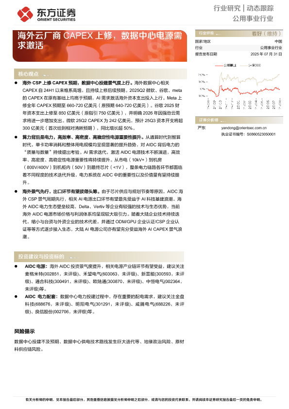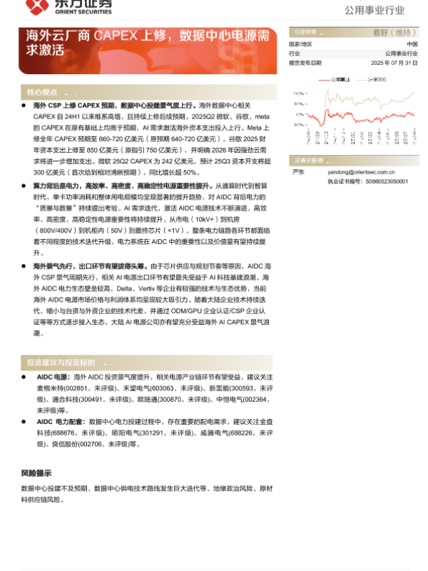 【东方证券】【20250731】公用事业行业动态跟踪_海外云厂商CAPEX上修_数据中心电源需求激活-4页